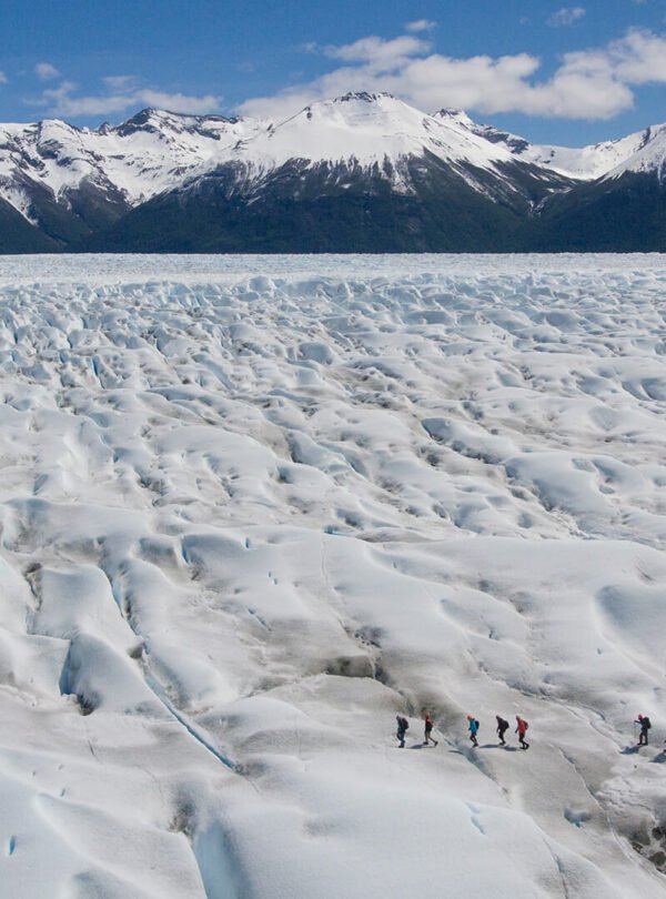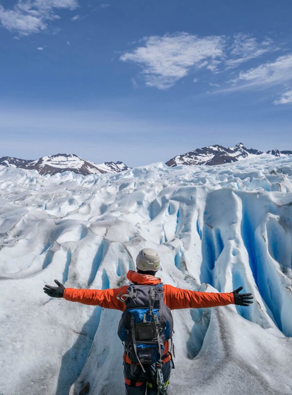 Durante cerca de três horas e meia, você caminhará sobre a geleira mais espetacular do mundo, descobrindo lagos azuis, fendas profundas, sumidouros gigantes, cavernas de gelo e formações incríveis. Com a orientação dos guias, é possível compreender melhor as características do gelo e a formação da geleira, além de contemplar montanhas imponentes como o Cerro Dos Picos, Cerro Pietrobelli e Cerro Cervantes.