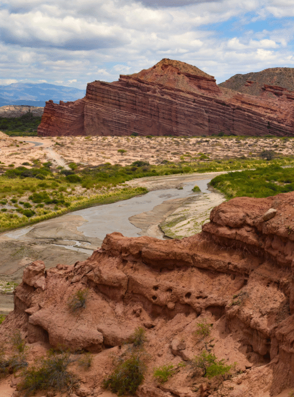 O passeio a Cafayate começa saindo de Salta, atravessando o pitoresco Vale de Lerma, repleto de paisagens tranquilas e vilarejos charmosos como Cerrillos, La Merced e Ampascachi. A primeira parada acontece em La Viña, onde a tradicional Posta de la Cabra oferece um momento de descanso com belas vistas da região. A viagem segue até Alemania, porta de entrada para os imponentes Vales Calchaquíes, uma das rotas mais deslumbrantes do norte argentino, onde o Rio Las Conchas guia o caminho entre cenários únicos e formações naturais impressionantes.