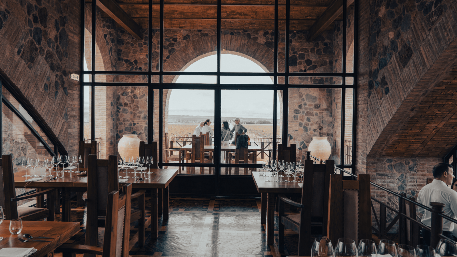 A ambientação elegante, integrada ao cenário singular da vinícola, eleva o jantar a uma experiência sensorial completa. A arquitetura da Catena Zapata é um ícone do enoturismo mundial, e vivenciar uma refeição dentro desse contexto torna o passeio ainda mais especial. A iluminação suave, o design do salão e o serviço impecável criam o clima ideal para apreciar cada etapa do menu.