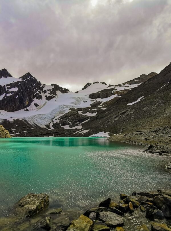 Após a imersão na floresta, a subida se torna mais intensa, exigindo resistência e equilíbrio. A parada para o lunch box oferece um momento de descanso e contemplação, antes da parte final da trilha. Ao chegar à Laguna de los Témpanos, o cenário é de pura magia — o espelho d’água reflete as montanhas cobertas de neve e o majestoso Glaciar Vinciguerra, criando uma das vistas mais impressionantes de Ushuaia.